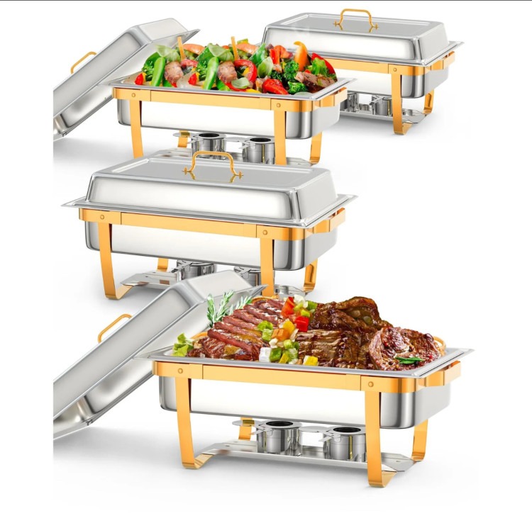 A sleek 9‑quart stainless steel chafing dish built for buffet service and catered events — roomy enough for hot entrees, sides, or large batches of appetizers and designed to keep food warm and presentable throughout your event. The polished stainless basin and matching lid resist stains and are easy to wipe clean, while the sturdy frame elevates the pan for steady heat distribution from the fuel holders below. Practical handles on the lid and pan make refilling and serving simple, and the removable water pan and fuel cups let you control temperature without touching hot metal. Perfect for weddings, corporate lunches, backyard parties, or any rental where reliable, attractive food service and long‑lasting heat retention matter.